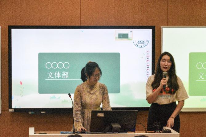 随后员工会、新媒体中心各部门宣讲正式开始,负责人依次上台向新生们介绍部门职能、部门成员与活动风采。