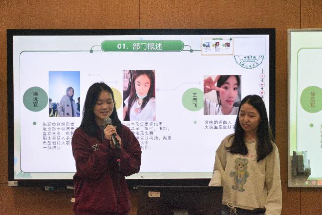 学术实践部从“植此青绿”、“青思沙龙”、“师兄师姐说”等特色活动入手,向大家介绍了部门日常开展的学术交流活动,鼓励大家参与其中,一同交流探讨学术问题。