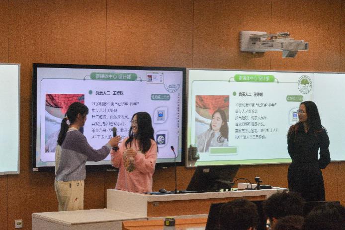 接下来新媒体中心下设的三个部门进行宣讲,负责人纷纷上台,向大家介绍各部门的基本情况和职责定位。