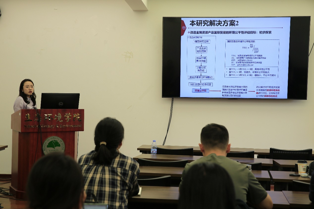 邸敬涵老师以《稀土资源国际贸易的环境影响与环境公平性》为题进行了分享。为减缓后新冠疫情时代稀土资源国际贸易的环境不公平性,实现稀土行业与国际贸易的环境可持续发展,针对稀土资源国际贸易的全球环境影响与环境公平性评估,邸敬涵老师建立了产品级、全生命周期和多环境要素的国际贸易环境影响与环境隐含流核算方法,分析了稀土资源产品贸易的环境隐含流网络,解决了国际贸易政策产品目录制定过程中产品级精确表征和精细化管理的决策问题,以此改进了贸易环境不公平性的量化评估指标,减小了由于传统指标表观化与差异性缺失等问题可能导致的评估误差与决策误差。