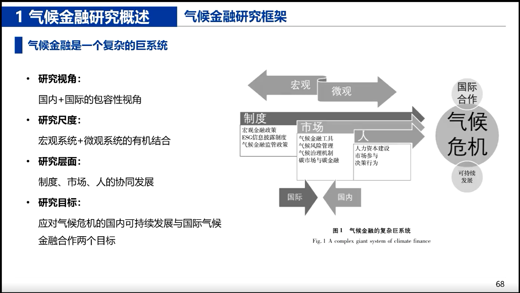 接下来,张跃军教授介绍了气候金融这一绿色金融新兴领域的研究热点与前沿进展。气候金融作为绿色金融的子集,聚焦于应对气候变化的减缓与适应,通过金融手段支持低碳转型和碳中和目标的实现。他指出,与传统金融风险相比,气候风险具有影响范围全球化、时间跨度长等独特特征,亟需在国家、区域、行业和企业等不同层面加以识别、测度和应对。张跃军教授进一步梳理了近年气候金融研究在学术界快速升温的趋势,研究主题涵盖气候变化对企业价值与投资者行为的影响、碳排放权定价与气候政策模拟、可再生能源投融资与绿色技术创新等多个方面。在方法上,气候金融研究呈现跨学科融合特征,既有经济学和金融学的计量模型,也引入了环境科学的大数据、统计分析和机器学习技术。