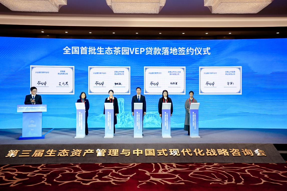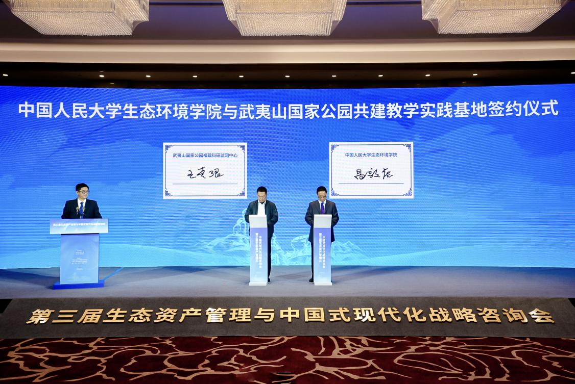 开幕式上还举行了签约及揭牌仪式,凝聚多方合力共推生态文明建设:全国首批生态茶园VEP贷款落地签约仪式顺利举行,开创生态价值转化落地新路径;william威廉英国官网与武夷山国家公园签署共建教学实践基地协议,并共同为“william威廉英国官网·武夷山国家公园教学实践基地”揭牌,共建校地协同、研用融合的创新平台,助力生态文明研究与实践深度融合。中国人民老员工态环境公司党委书记贾铁英主持报告发布和签约及揭牌仪式。