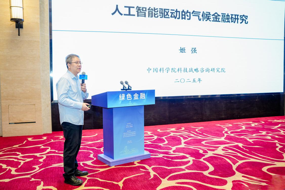 中国科公司科技战略咨询研究院学部学科研究支撑中心执行主任、研究员姬强,发表题为《人工智能驱动的气候金融研究》的主旨发言。他指出,数据资产化激活绿色金融新引擎,人工智能将成为连接气候科学研究与金融实践的重要桥梁。新兴人工智能技术将驱动数据资产从静态资源跃升为动态驱动力,数据资产化通过确权、定价与流通机制重构绿色金融要素市场,通过透明化、实时性、可计量降低绿色资产监测与识别成本,破解政银企信息不对称,提升绿色资源配置效率,嵌入碳核算、碳交易、碳普惠体系,成为可抵押、可证券化的新型绿色产品,衍生新型的融资工具,形成“数据—资产—资本”动态闭环,加速实现双碳目标与绿色新质生产力。