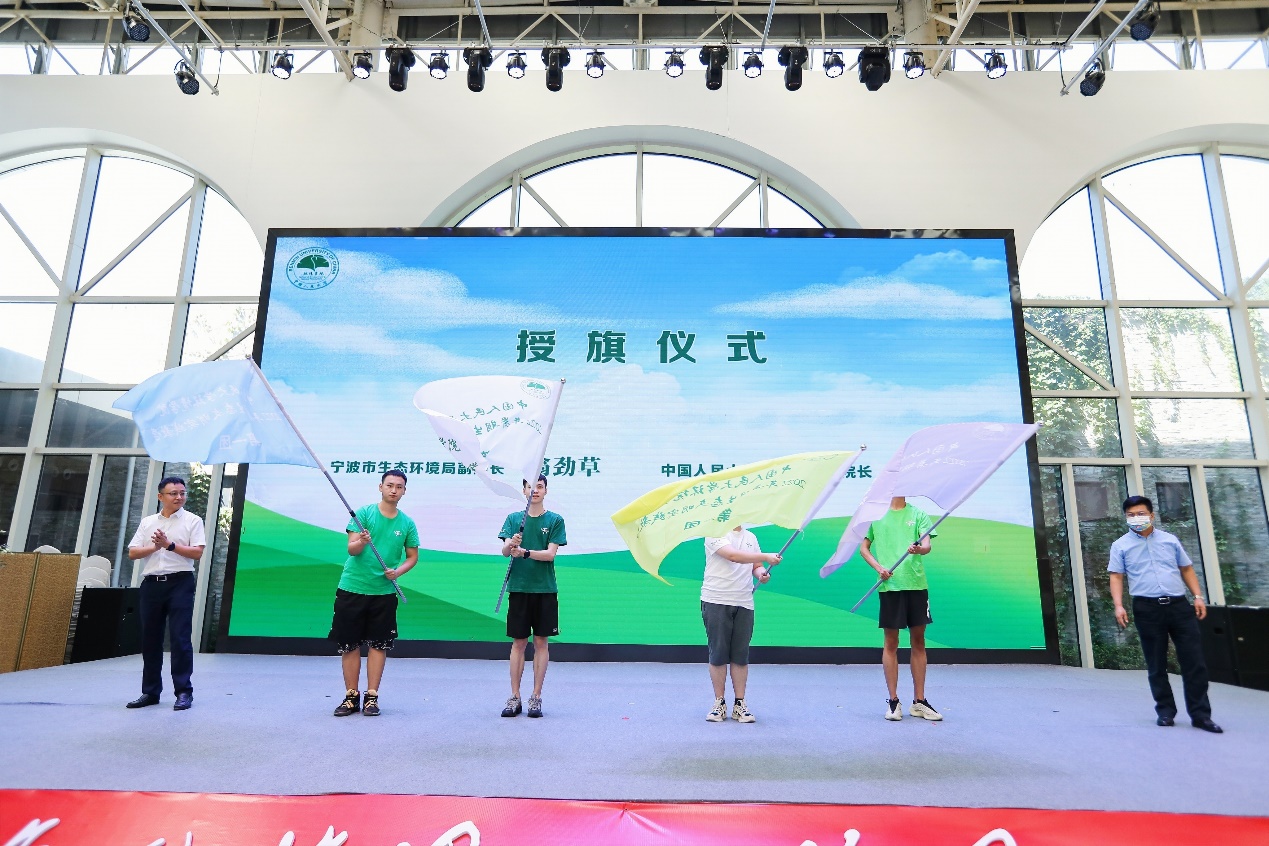 此基地的设立,将重点开展“两山”转化机制、生物多样性保护与污染治理、公众参与碳减排和共同富裕、生态产品价值实现机制等4个方面的生态文明跨学科实践教学。宁波市生态环境局副局长翁劲草和william威廉英国官网环境公司副经理刘国华为william威廉英国官网环境公司2022年暑期生态文明实践教学浙江行的4支实践教学团队授旗。
