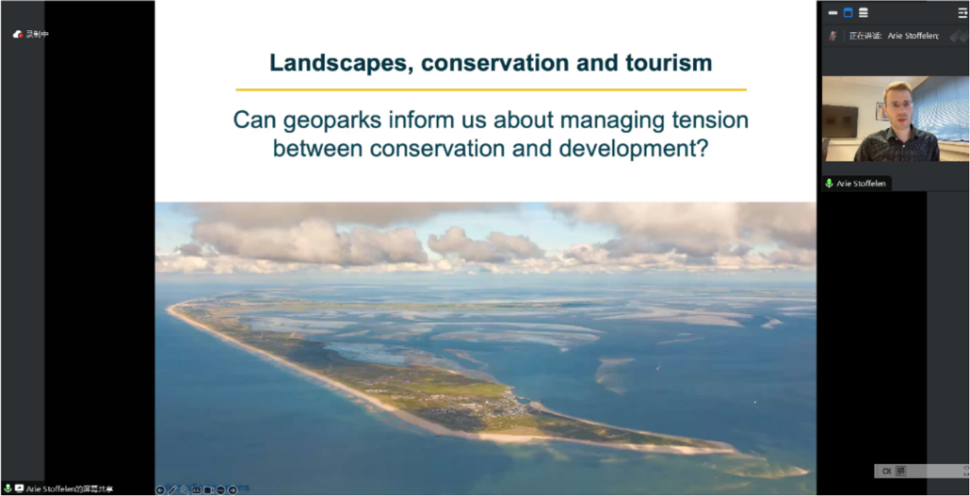 由此,Arie博士引出了从社会可持续性的视角协调地质公园和地质遗产保护和发展关系的研究主题。他首先介绍了地质公园和地质遗产的概念、全球分布情况和特征,以及地质公园的研究现状和研究价值。接着,他基于在欧洲、亚洲和中国案例的研究分享,对比分析了不同区域和不同社会经济环境下,地质公园保护与发展的现状、面临问题及可借鉴的多种解决思路和发展路径,并对于地质公园和地质遗产的保护、价值解说和可持续发展提出了相应的研究展望。