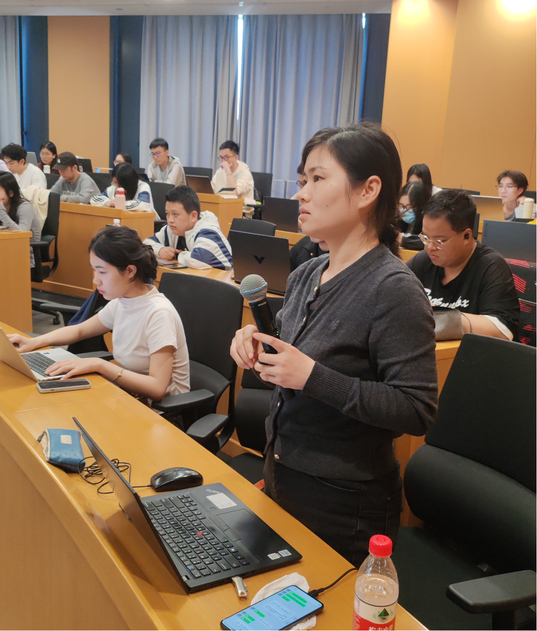 在交流讨论环节,多位师生针对学术报告中关于风光废弃物回收的定价标准、商业模式的可行性、风光废弃物回收指标的确定、光伏废弃物回收的规模和回收成本的动态变化、光伏废弃物回收的业态、风光废弃物回收政策情景设计、退役光伏组件回收利用市场空间以及光伏部署的碳减排效应等问题,与李佳硕教授进行了深入探讨,气氛活跃,师生反响热烈。