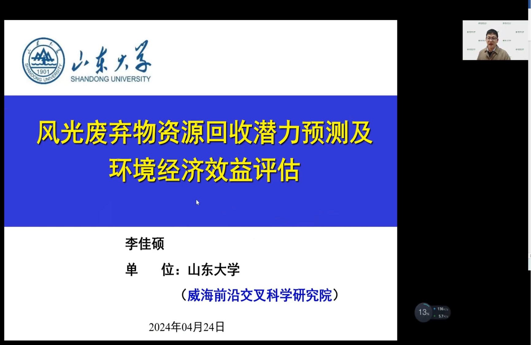 李佳硕教授从四个方面对风光组件的回收进行研究,一是气候变化下未来风光部署的时空演化特征,二是退役风光设备的多空间分布特征及中长期演变规律,三是多种回收技术的差异化资源环境经济效益如何,四是多目标约束下风光废弃物回收治理路径,以期从多视角下为回收策略提供科学的方案。