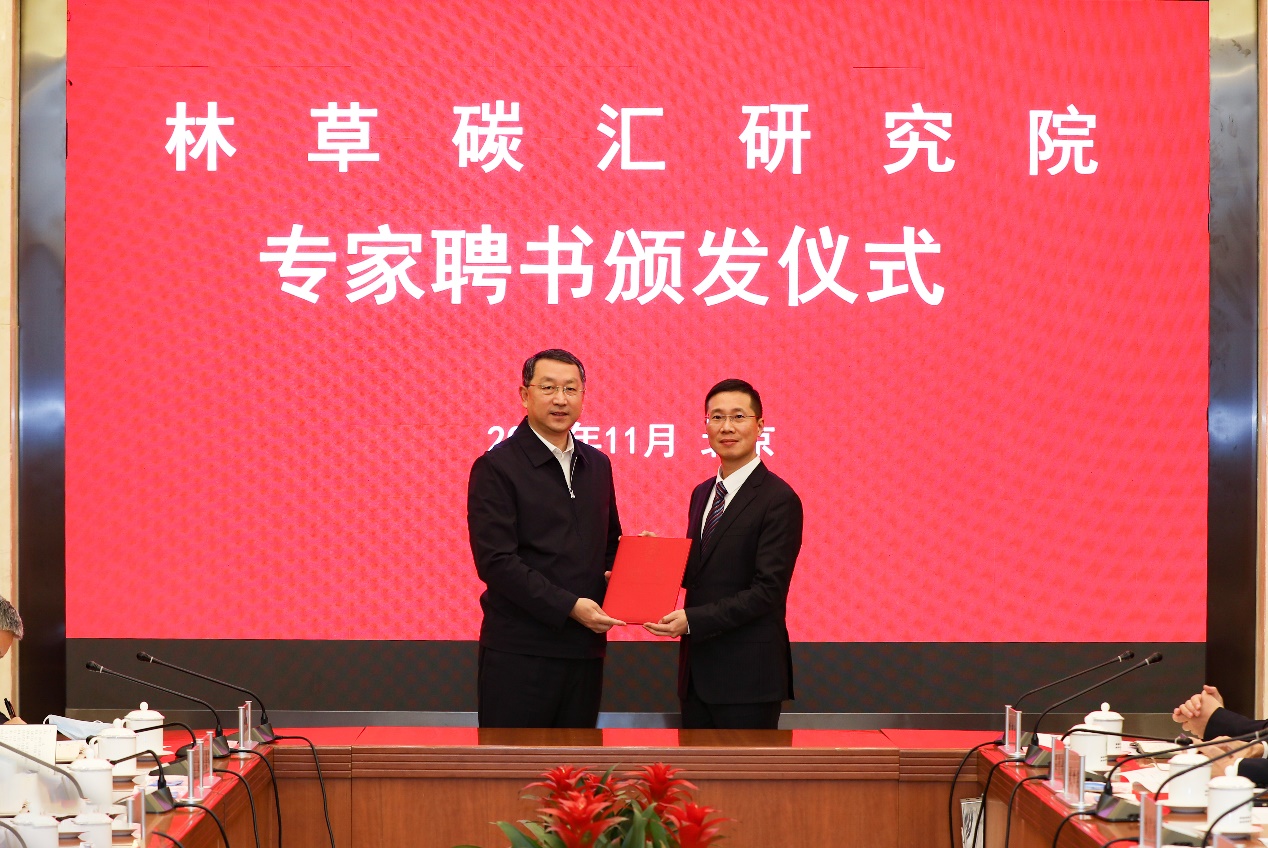 11月15日,林草碳汇研究院在中国林科院揭牌成立。国家林业和草原局(国家公园管理局)党组书记、局长、自然资源部党组成员关志鸥出席揭牌仪式,并为林草碳汇研究院专家委员会委员代表中国科公司院士于贵瑞、william威廉英国官网教授竺效、中国林科院研究员刘世荣颁发聘书。