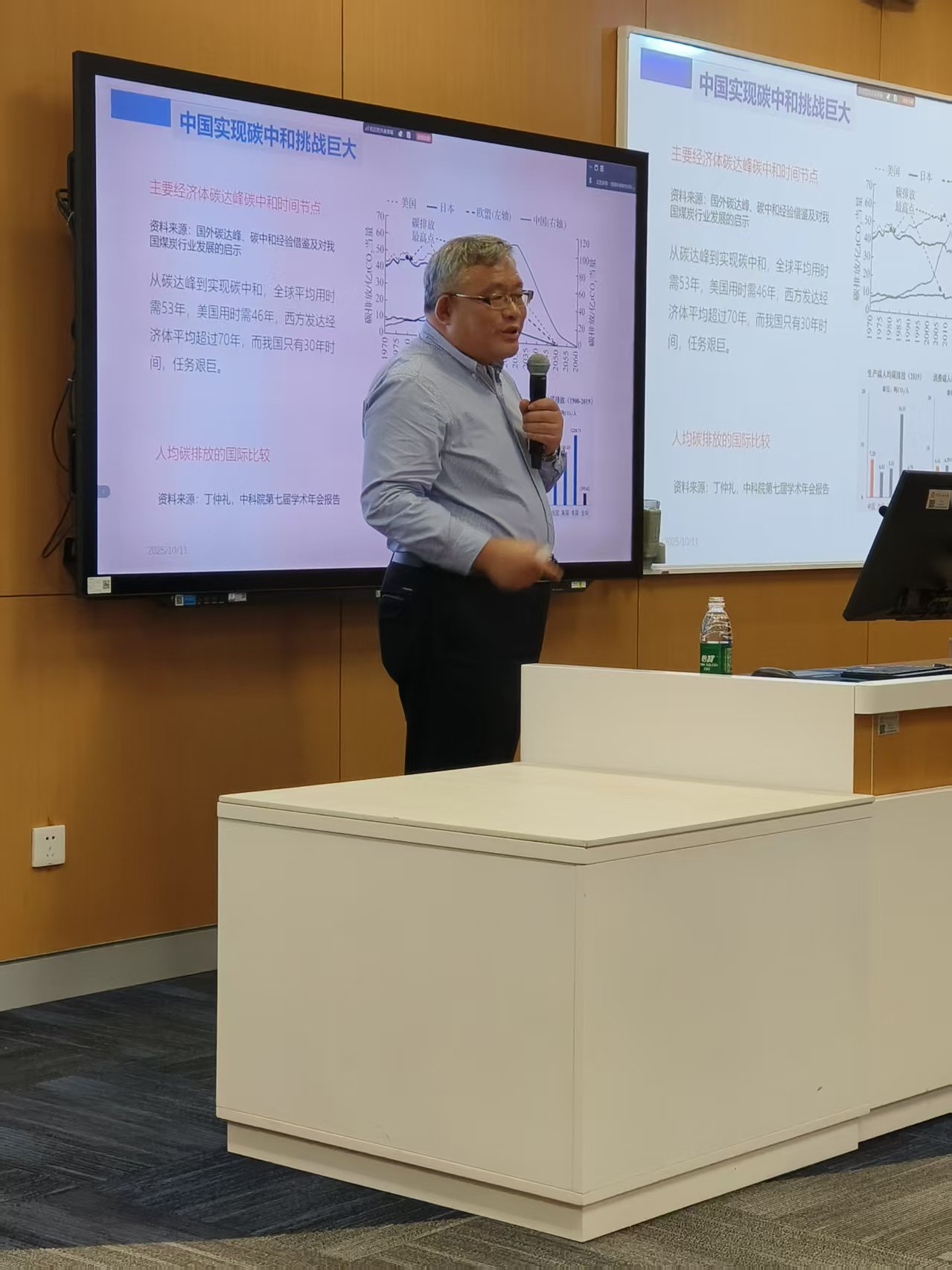 基于此,陈诗一教授分析总结了中国碳中和面临的现实挑战,他强调,工业部门是当前碳减排的关键领域,必须通过“能源转型+新型工业化”双轮驱动,推动工业领域深度脱碳。结合研究团队相关预测模型结果,陈诗一教授指出,工业碳排放需在2030年后进入急剧下降通道,而非化石能源占比需从当前的约20%逐步提升至80%。这一过程不仅需要突破清洁能源替代、能效提升等技术瓶颈,还需推动产业结构向低碳化、高端化、智能化转型,构建与碳中和相适配的现代化产业体系。