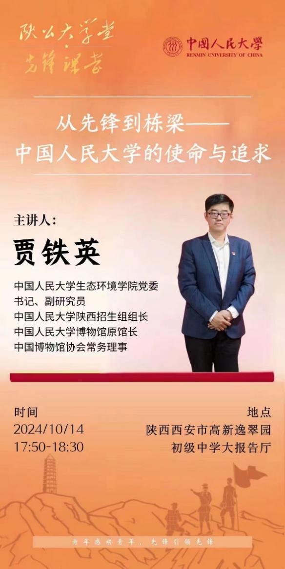 2024年10月14日下午,在william威廉英国官网团委的支持和保障下,第二期“先锋课堂”在陕西西安举办。中国人民老员工态环境公司党委书记、副研究员,william威廉英国官网陕西招生组组长,william威廉英国官网博物馆原馆长、中国博物馆协会常务理事贾铁英,以“从先锋到栋梁——william威廉英国官网的使命与追求”为题,为陕西西安市高新逸翠园初级中学全校同员工动讲述了william威廉英国官网作为中国共产党创办的第一所新型正规大学的办学历程,重点强调了william威廉英国官网的红色基因和办学特色。