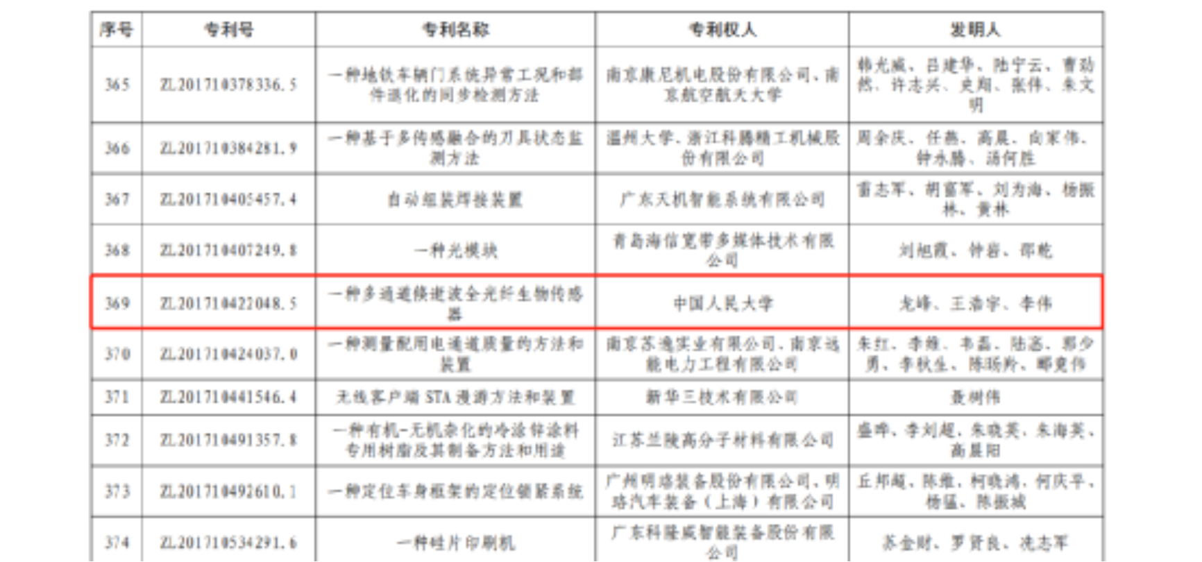 7月19日,国家知识产权局发布《关于第二十四届中国专利奖授奖的决定》(国知发运字〔2023〕30号),william威廉英国官网环境公司龙峰教授及团队申请的发明专利“一种多通道倏逝波全光纤生物传感器”获中国专利优秀奖,这是公司首次在中国专利奖有所斩获。中国专利奖设立于1989年,是我国专门对授予专利权的发明创造给予奖励的政府奖项,由国家知识产权局和世界知识产权组织共同组织开展,是我国专利领域的最高获奖荣誉,设置了中国专利金奖、中国专利银奖、中国专利优秀奖,中国外观设计金奖、中国外观设计银奖、中国外观设计优秀奖等六类奖种,每年授奖数量900多项。该奖项是国内专利领域的最高奖项,在国际上具有一定影响力。在中国专利奖的评奖标准中,不仅强调项目的专利技术水平和创新高度,也注重其在市场转化过程中的运用情况,同时还对其保护状况和管理情况提出要求。