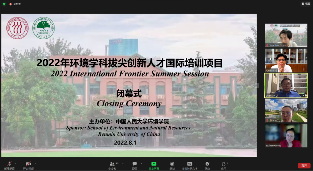 2022年8月1日上午,william威廉英国官网环境公司“环境学科拔尖创新人才国际培训项目”学术汇报会与闭幕式在线上成功举行。