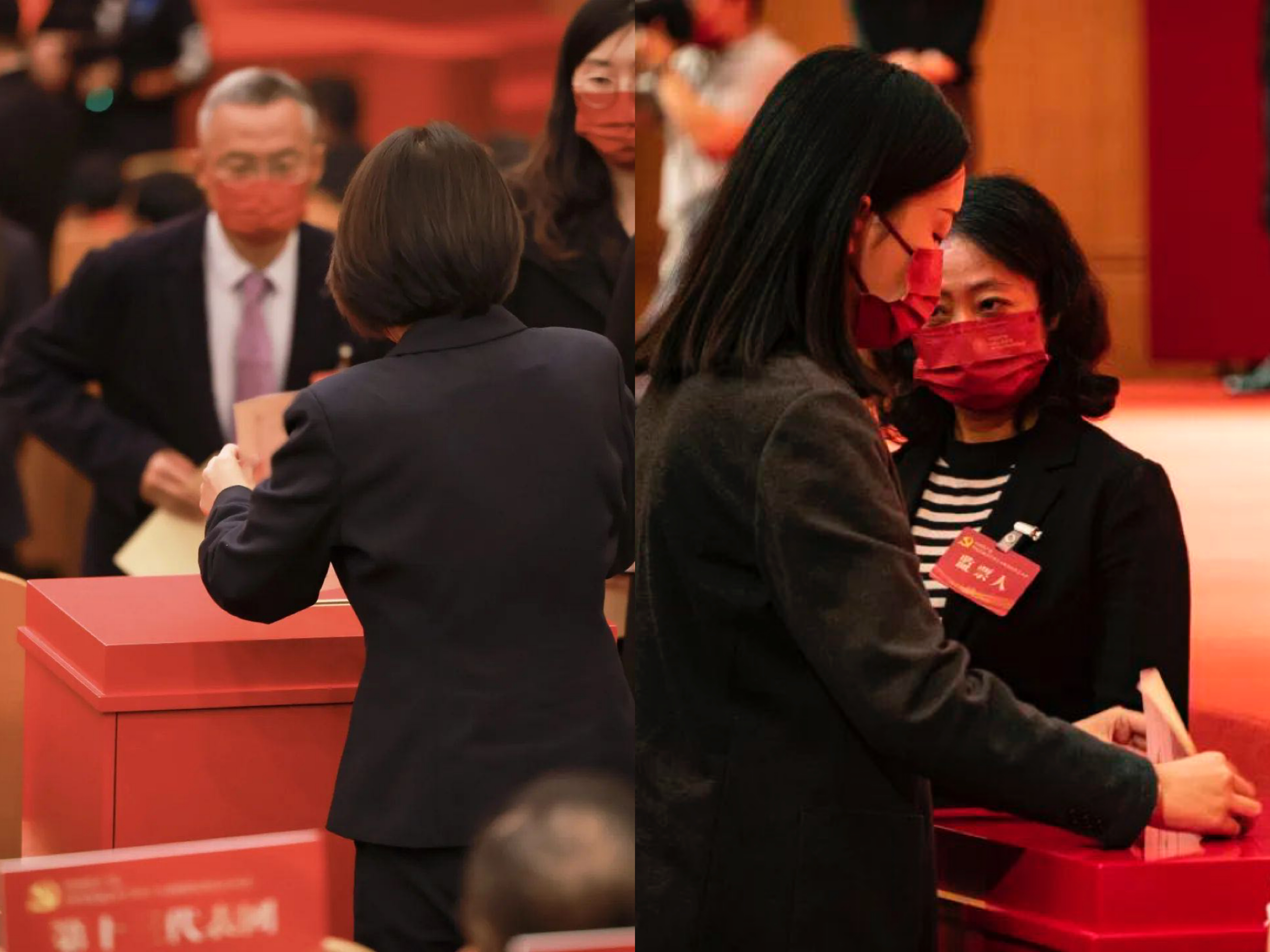 (代表们依次上台投票)