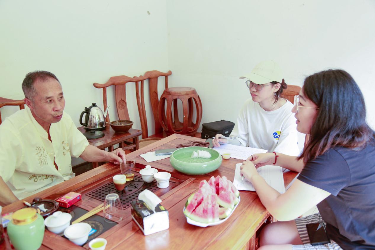 7月26日上午,调研团队师生又来到制作出名茶“金骏眉”首泡的桐木村骏德茶业访谈调研,探索武夷山茶业与生态协同发展的宝贵经验。骏德茶业负责人梁添梦介绍企业绿色茶业的发展情况,讲述茶叶生产工艺的生态友好创新转变,并邀请师生一同品尝不同品种的红茶,感受其独特的口感韵味。