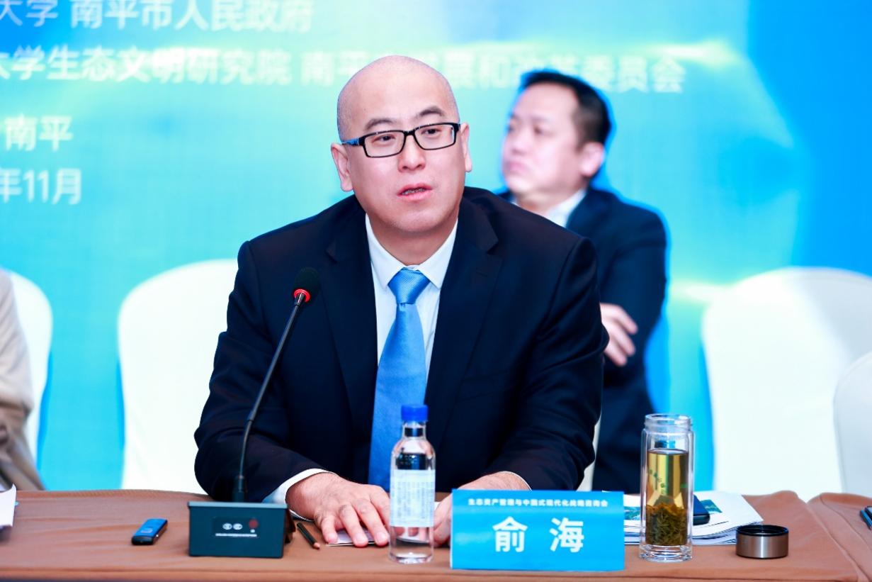 习近平生态文明思想研究中心副主任、生态环境部环境与经济政策研究中心副主任俞海研究员发表题为“生态产品价值实现机制的理论辨析、实践难点和对策建议”的引导性发言。他表示,健全生态产品价值实现机制,需要深刻理解习近平生态文明思想的内涵,正确认识生态产品的内涵与外延,加强理论指导实践,实践方面需要加快自然资产普查和确权,强化生态产品认证推广体系。